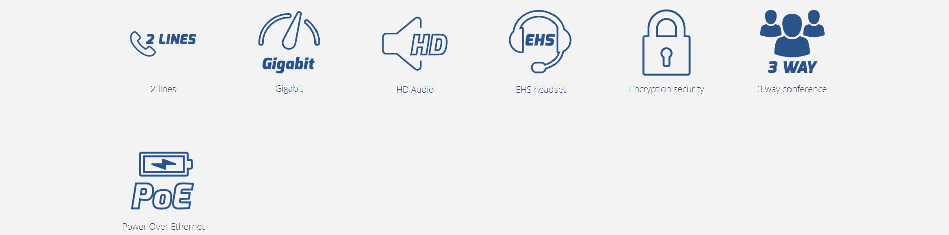| 協定/標準 | SIP RFC3261, TCP/IP/UDP, RTP/RTCP, HTTP/HTTPS, ARP/RARP, ICMP, DNS (A record, SRV, NAPTR), DHCP, PPPoE, SSH, TFTP, NTP, STUN, SIMPLE, LLDP-MED, LDAP, TR-069, 802.1x, TLS, SRTP |