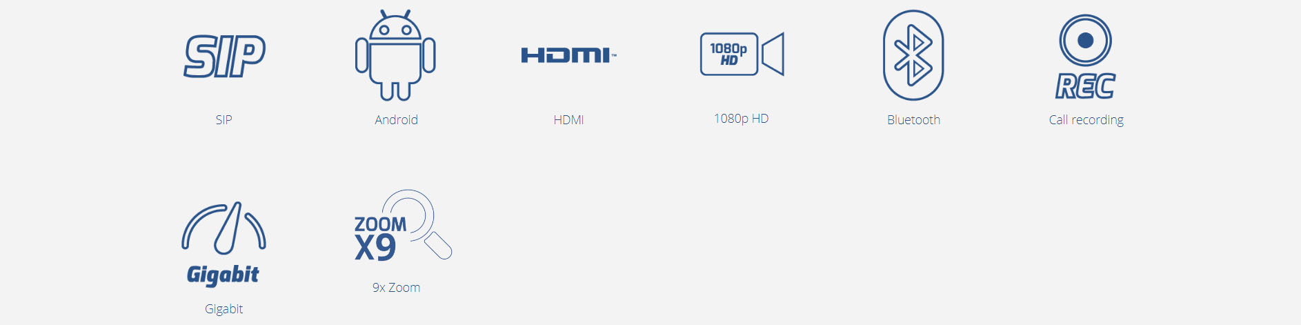 | 電話功能 | 呼叫保持,被轉移,來電轉接(無條件轉移、無應答轉移、遇忙轉移),呼叫駐留,搶接,9方音視訊會議,下載通訊錄(XML,LDAP),呼叫等待,呼叫記錄,靈活的撥號規則,自訂來電鈴聲,伺服器冗餘及Fail-over功能 |