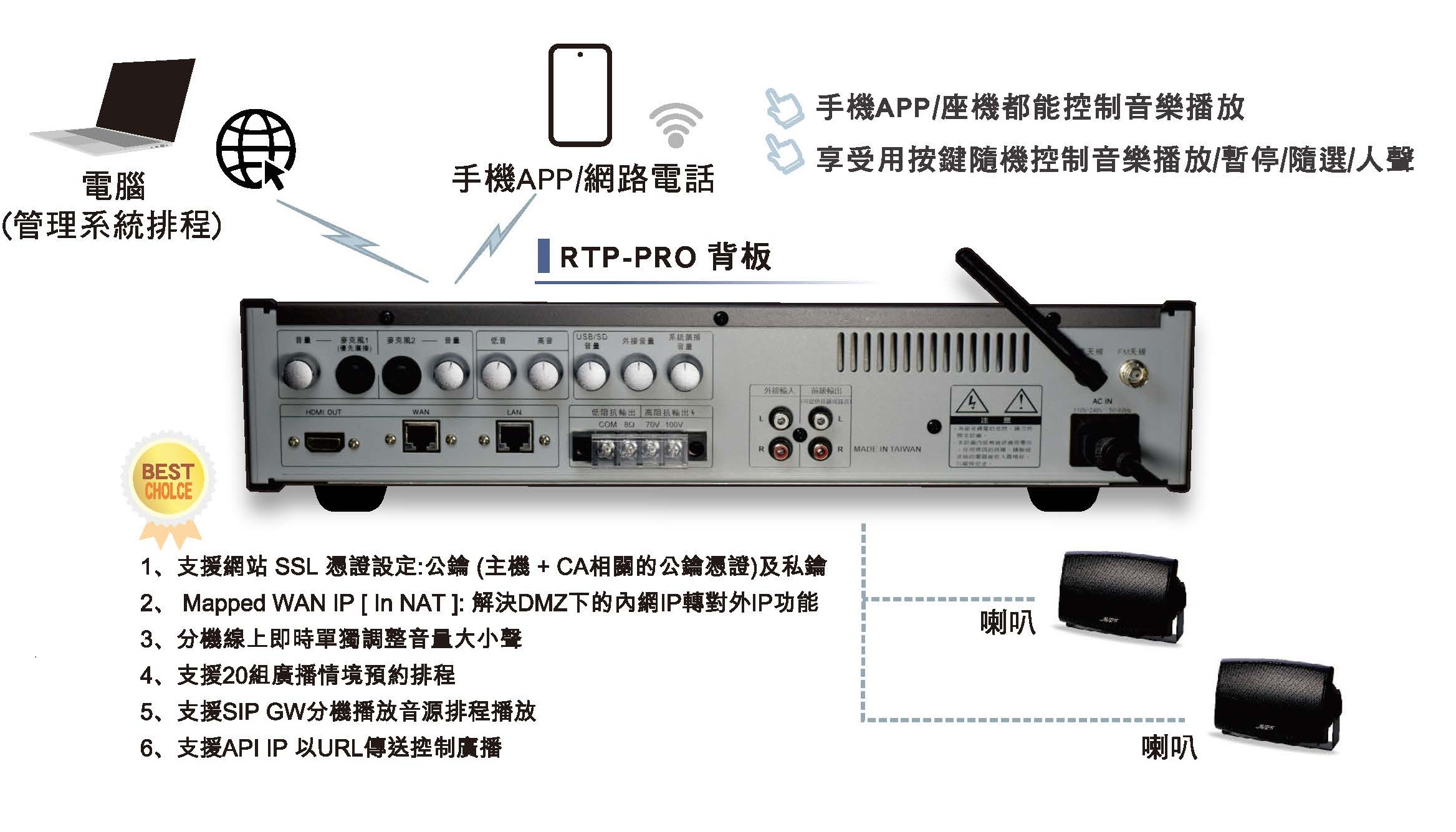 █ 高整合性-可當SERVER或CLIENT設備,同時支援並整6入廣播系統10台